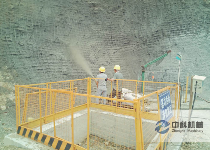 中鐵二十五局ZK700混凝土濕噴機(jī)施工現(xiàn)場(chǎng)